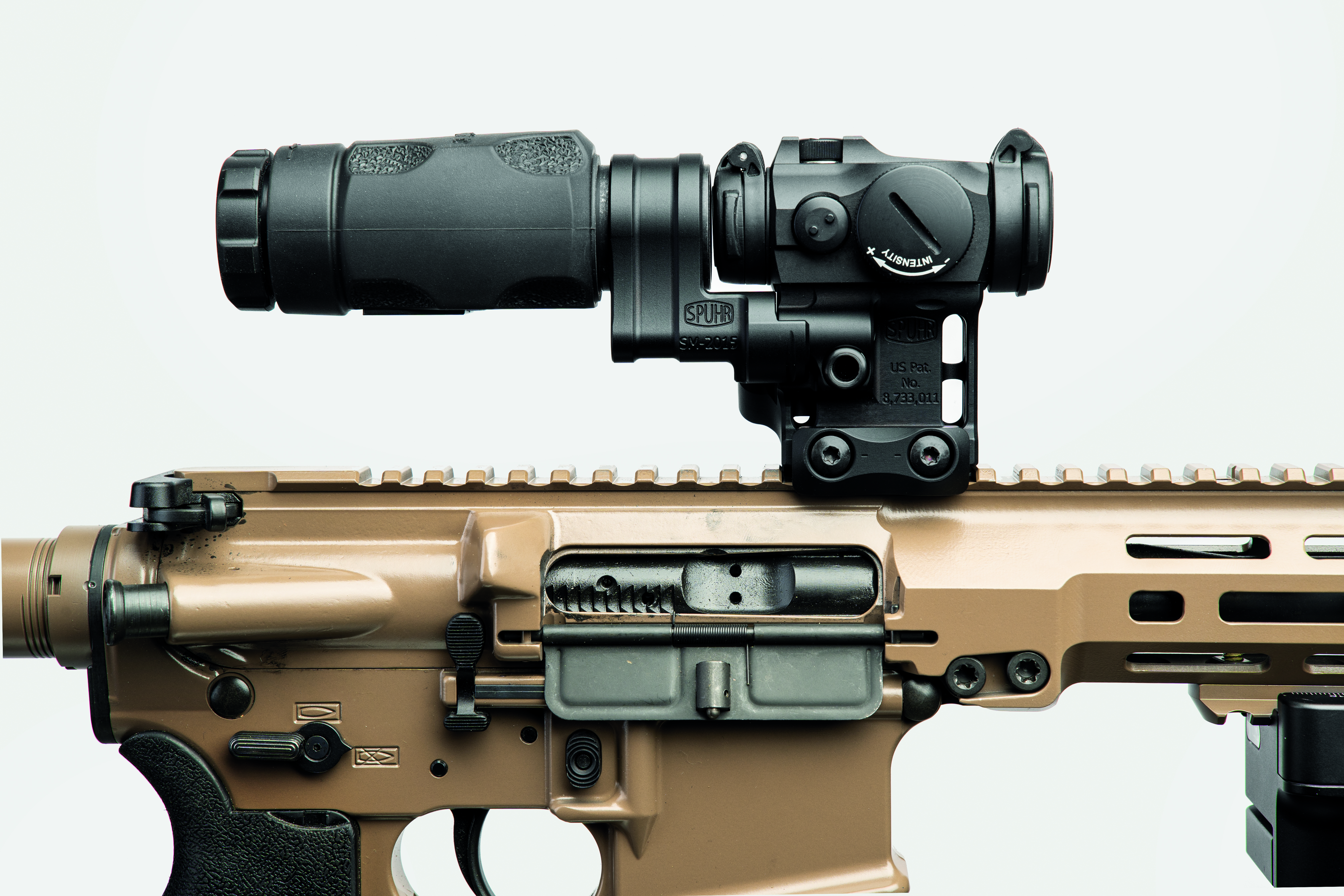The RD™ and RDF™ series is a prime example of Swedish innovation and quality, and was a customer-prompted project, where a European military unit requested a mounting solution for the Aimpoint® Micro™ T-2 and the Aimpoint® 3XMag-1™ – but with a weight constraint not previously achieved by any manufacturer. We (Spuhr®) rose to the challenge and won the contract.
